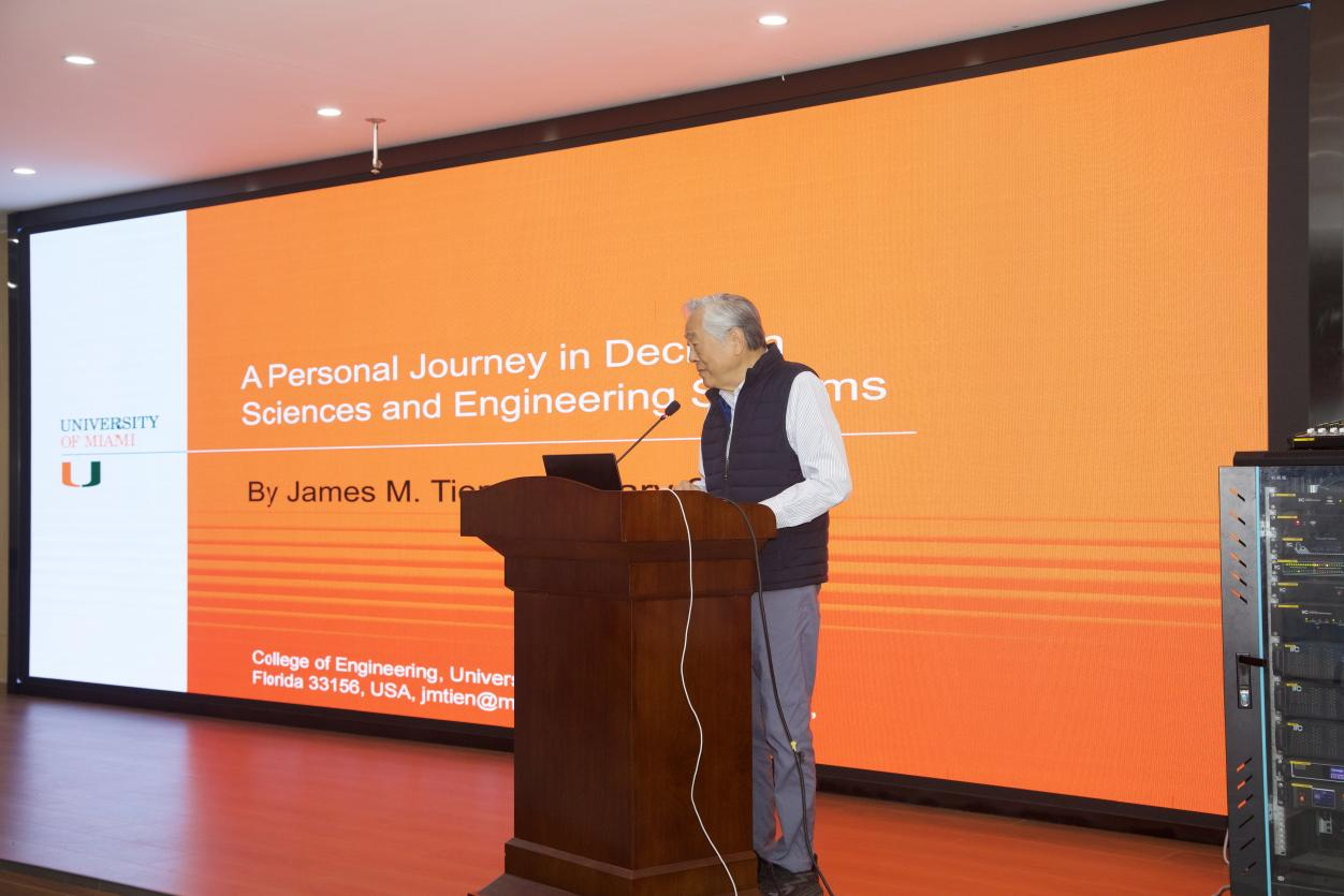 James M. Tien院士以《A personal Journey in decision sciences and engineering systems》为题,结合自身跨亚、美、南美三大洲的教育背景,以及53年产学研融合的从业经历,解析了决策科学与工程系统的核心属性,阐述了二者融合的应用价值,还分享了运用该理论的投资实践,探讨了领域在人工智能、大数据等前沿方向的挑战。
